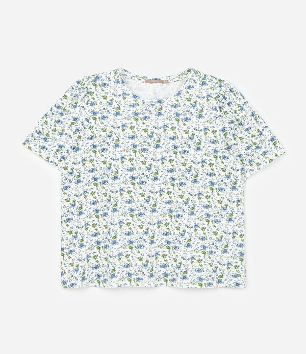 Blusa confeccionada em malha de algodão BCI. A peça tem gola redonda, mangas curtas bufantes e estampa floral liberty.