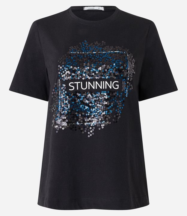 Blusa em Algodão com Estampa Lettering e Paêtes
