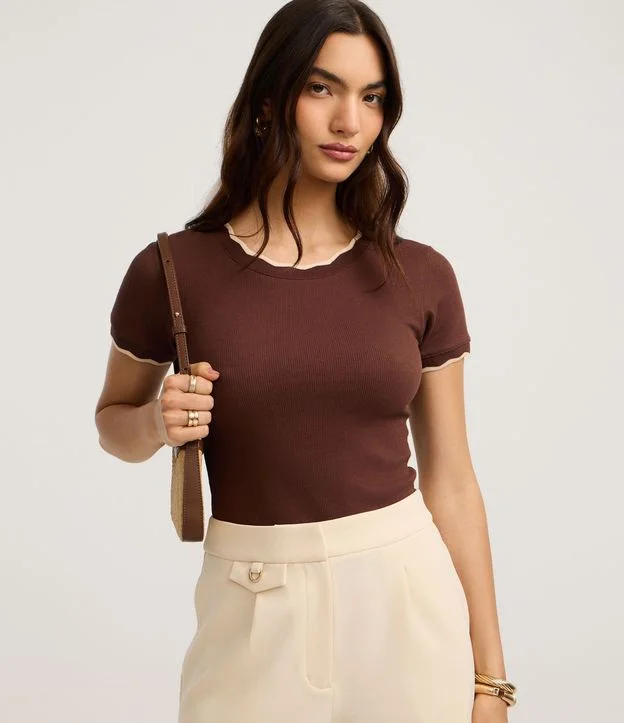 Blusa em algodão sustentável, com detalhes ondulados contrastantes na gola e nas mangas curtas.