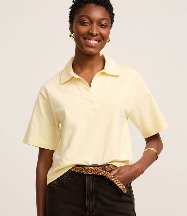 Blusa em Algodão com Gola Polo e Manga Curta Amarelo Pastel