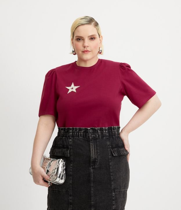 Blusa em Algodão com Manga Bufante e Aplicação em Strass Curve & Plus Size