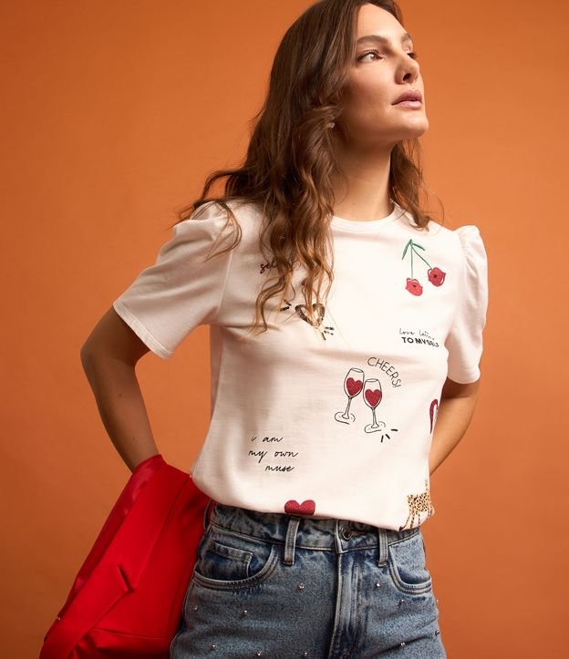 Blusa em Algodão com Manga Bufante e Estampas Cool