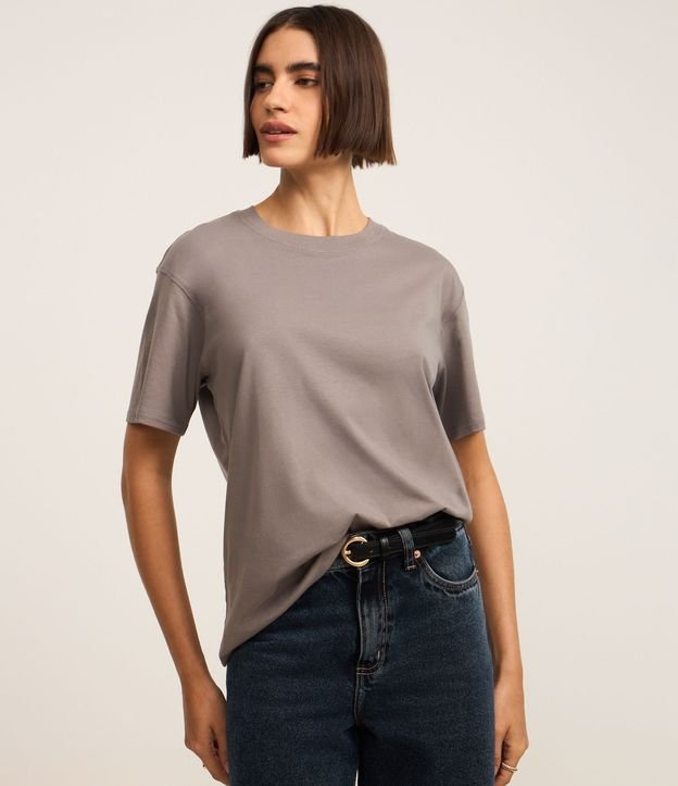 Blusa em Algodão Peruano com Recorte Pespontado nas Costas Cinza