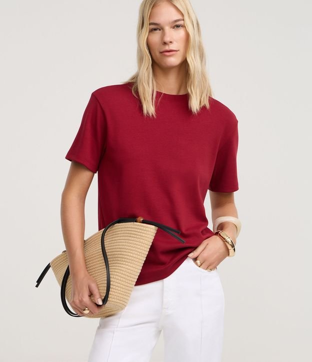 Blusa em Algodão Peruano Interlock com Gola Redonda Bordô