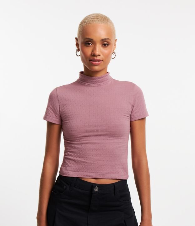 Blusa em Algodão Texturizada com Gola Alta Rosa