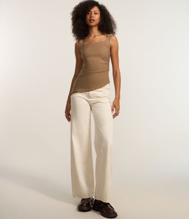 Blusa de alça larga, confeccionada em bengaline com decote quadrado e barra assimétrica.