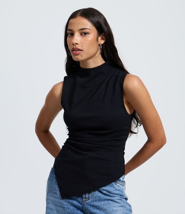 Blusa em Bengaline com Golinha e Barra Assimétrica Preto