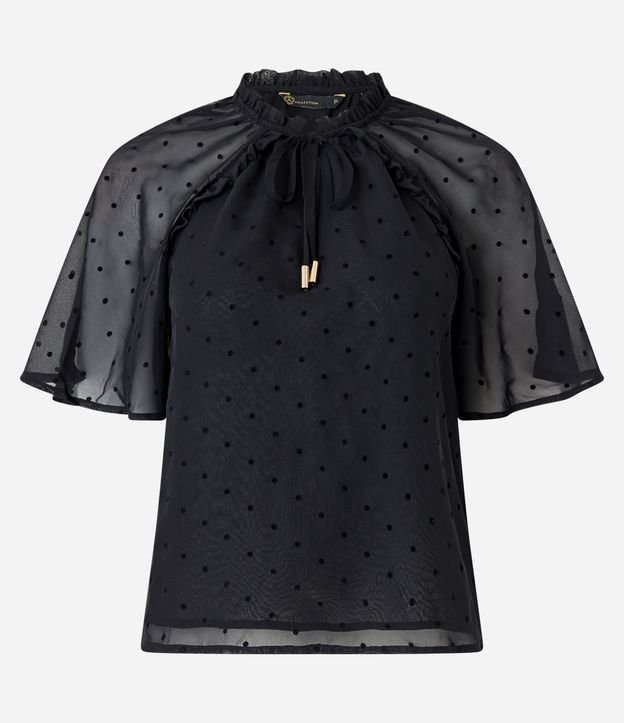Blusa em Chiffon com Amarração na Gola e Textura Poá