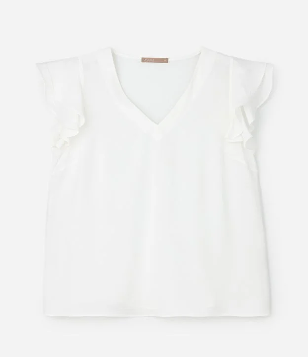 Blusa em Crepe com Babado Duplo no Ombro Curve & Plus Size Branco