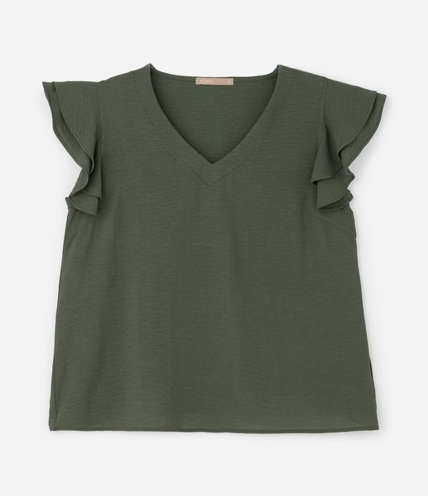 Blusa em Crepe com Babado Duplo no Ombro Curve & Plus Size Verde Escuro