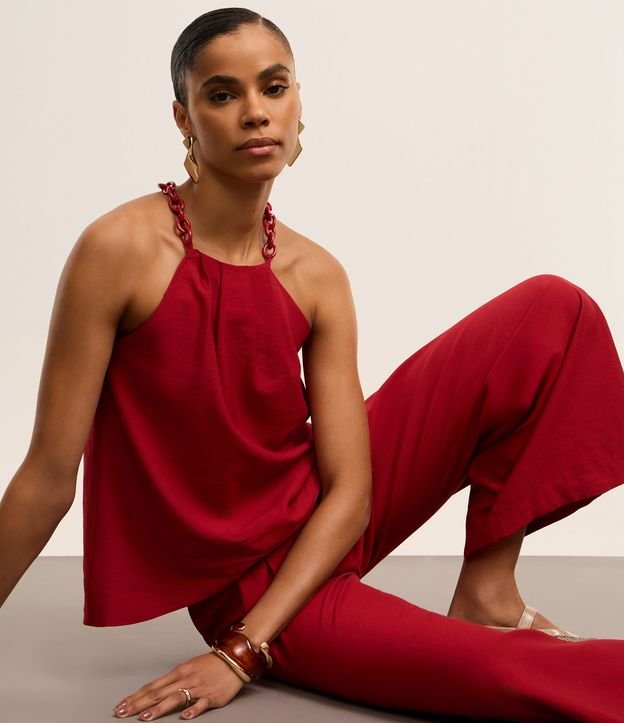 Blusa em Crepe com Corrente na Gola Halter Vermelho