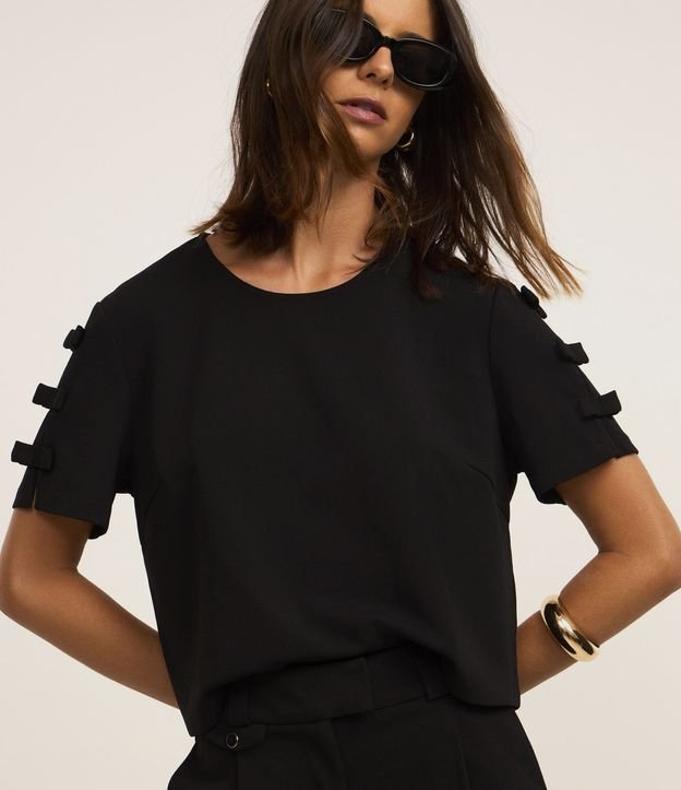 Blusa em Crepe com Lacinhos na Manga Preto