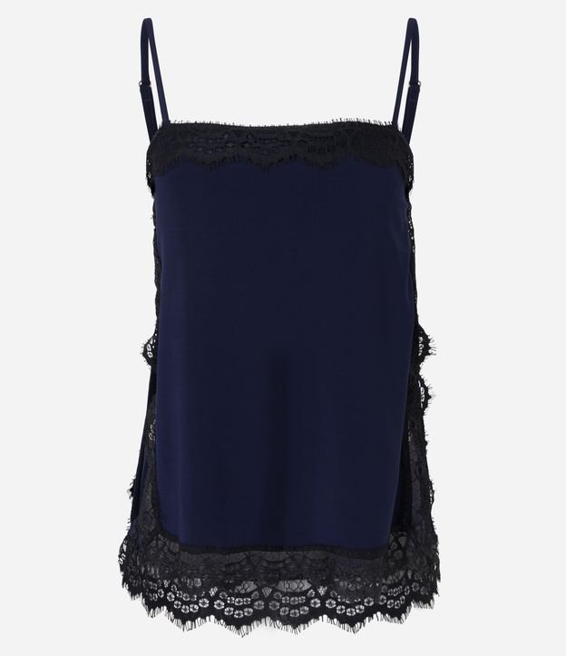 Blusa em Crepe com Renda Lateral e Alça Fina Azul