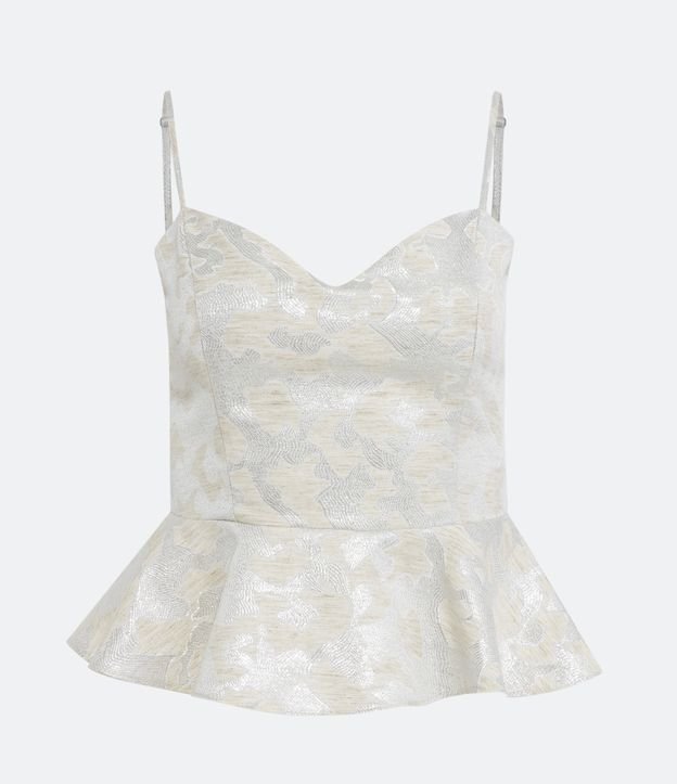 Blusa em Jacquard com Decote Coração e Peplum na Barra