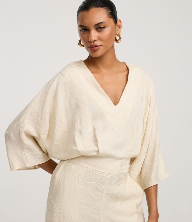 Blusa em Laise com Bordado Floral e Manga 7/8 Off White