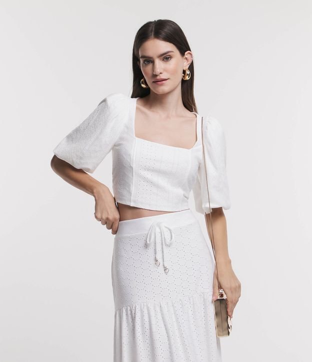 Blusa em Laise Texturizada com Manga Curta Balonê