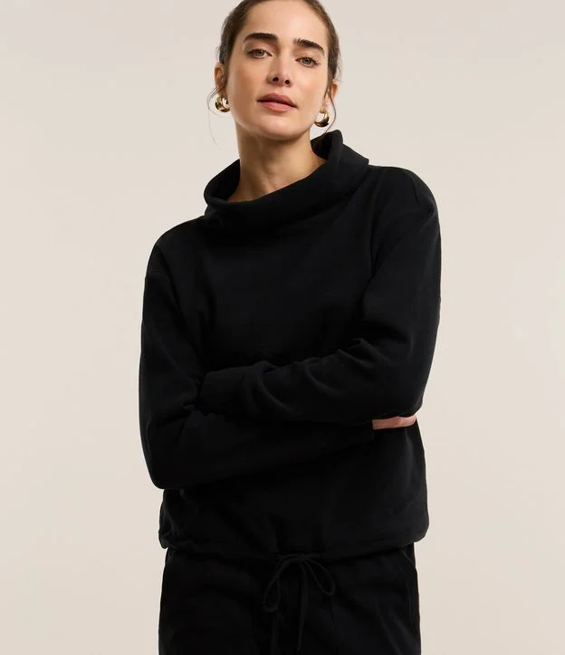 Blusa em Malha Brush com Gola Alta Degagê Preto