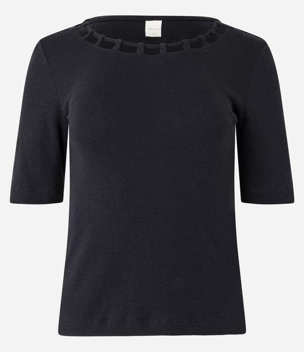 Blusa em Meia Malha com Detalhe Trançado e Vazado na Gola Preto