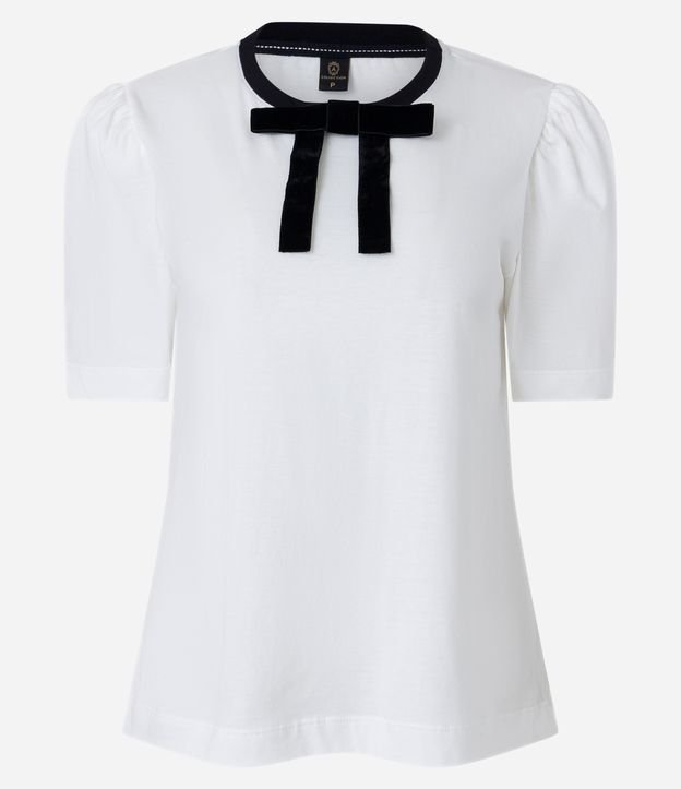 Blusa em Meia Malha com Laço na Gola e Manga Bufante