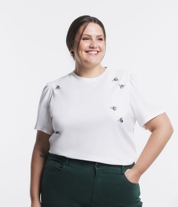 Blusa em Meia Malha com Manga Bufante e Estampa Abelhas Curve & Plus Size
