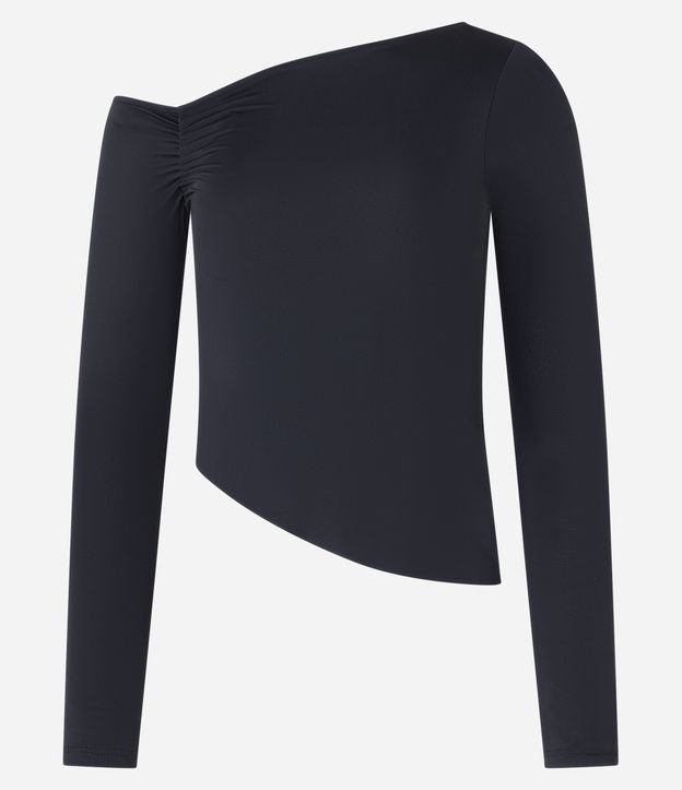 Blusa em Microfibra com Decote Assimétrico e Drapeado na Cava