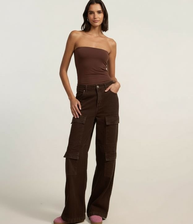 Blusa em Microfibra Tomara que Caia com Fenda Lateral Marrom