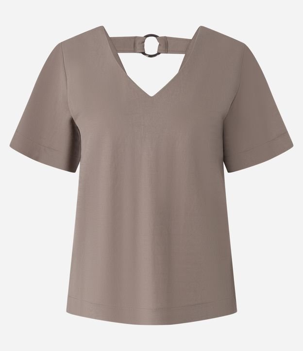 Blusa em Orly com Decote V e Faixa com Argola nas Costas Marrom