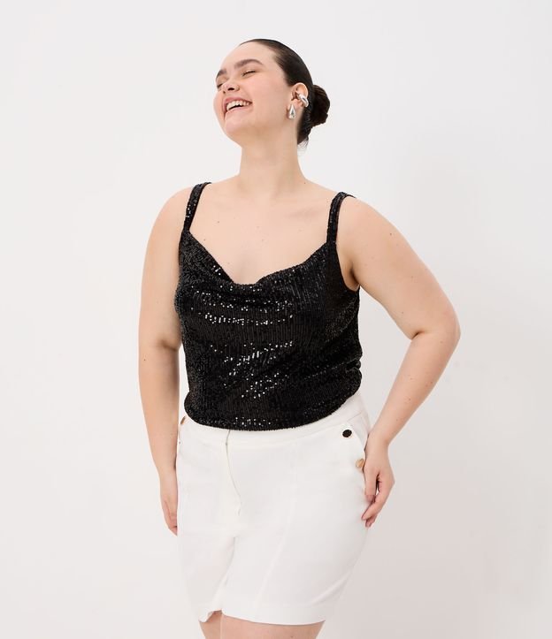 Blusa em Paetê com Decote Degagê Curve & Plus Size Preto