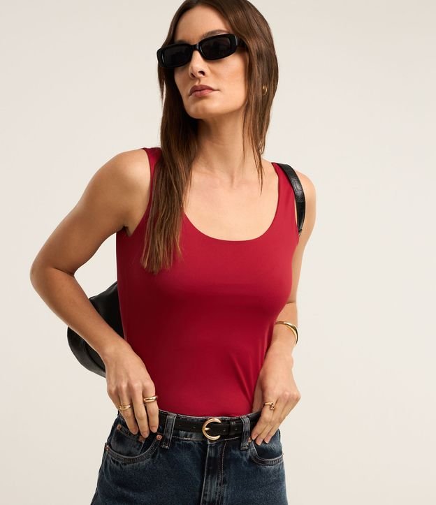 Blusa em Poliamida com Decote U e Alça Larga Vermelho Vivo