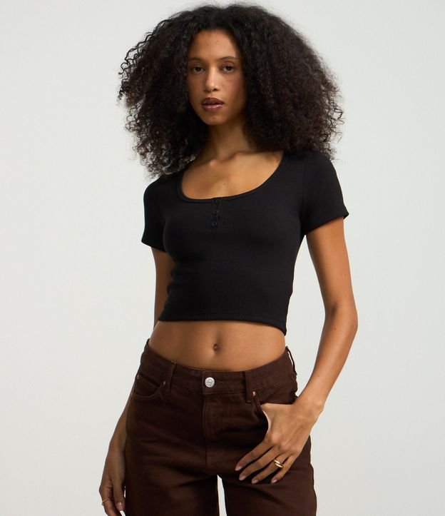 Blusa em Ribana com Botões no Decote