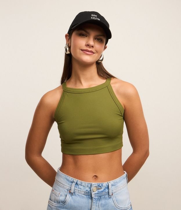 Blusa em Ribana com Gola Halter Verde