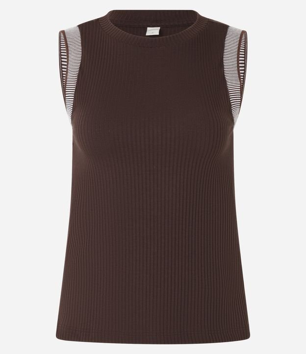 Blusa em Ribana com Gola Redonda e Cava Listrada Marrom
