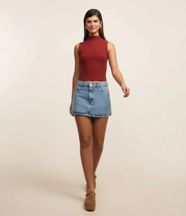 Blusa em Ribana com Golinha Alta Vermelho