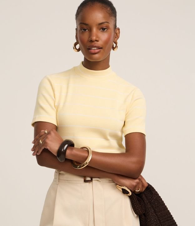 Blusa em Ribana com Golinha Média e Estampa Listrada Amarelo