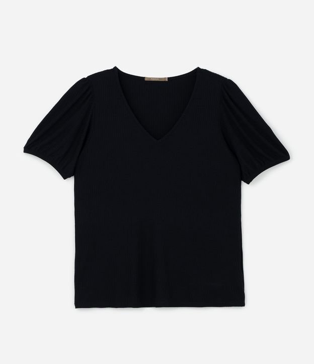 Blusa em Ribana com Manga Bufante Curve & Plus Size Preto