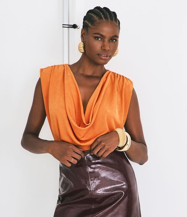 Blusa em Ribana com Ombreiras e Laterais Drapeadas Laranja