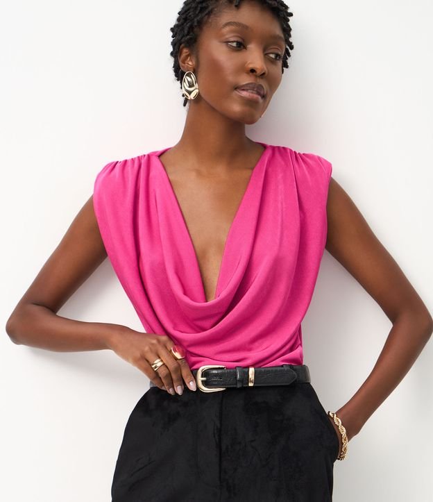 • Blusa em Ribana com Ombreiras e Laterais Drapeadas Rosa 6