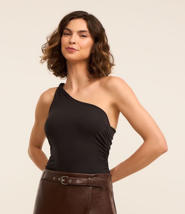 Blusa em Ribana com Um Ombro Só e Alça Torcida Preto