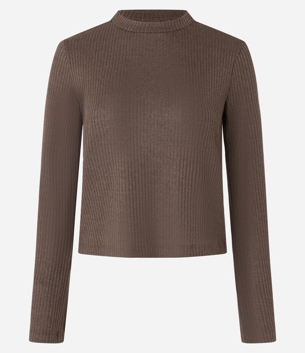 Blusa em Ribana Texturizada com Golinha Alta Marrom