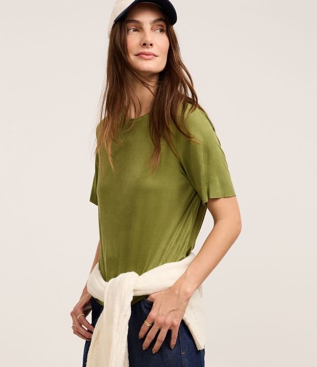Blusa em Suede com Gola Redonda e Manga Curta Verde Oliva