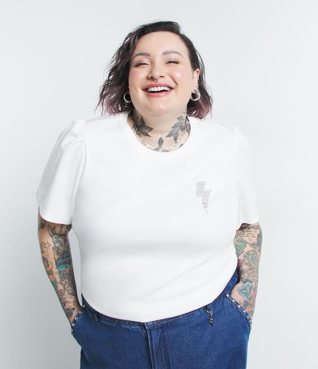 Blusa em Suedine com Detalhe de Strass Curve & Plus Size Coleção Jessica Lopes