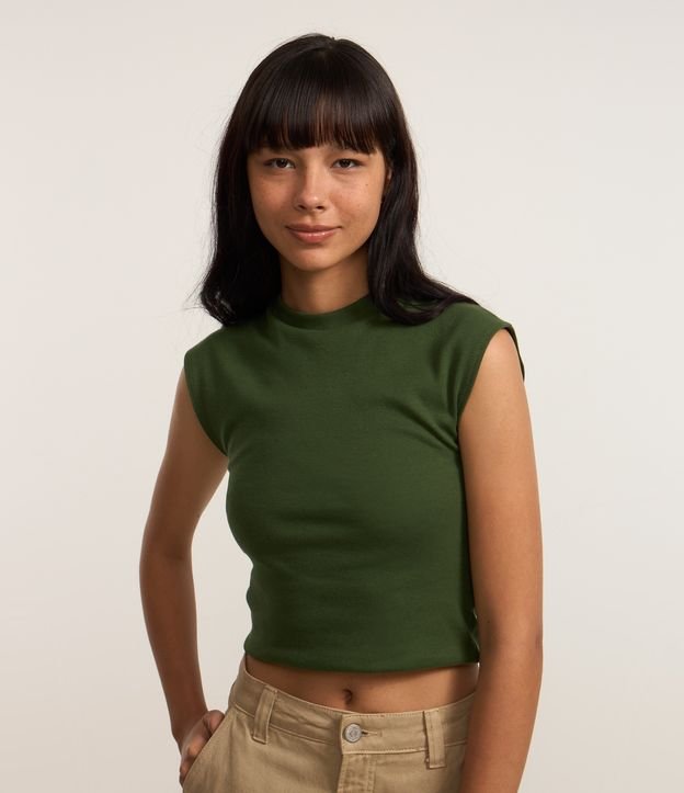 Blusa sem manga, básica com golinha redonda, ombro caído e confeccionado em suedine com algodão bci mais sustentável.