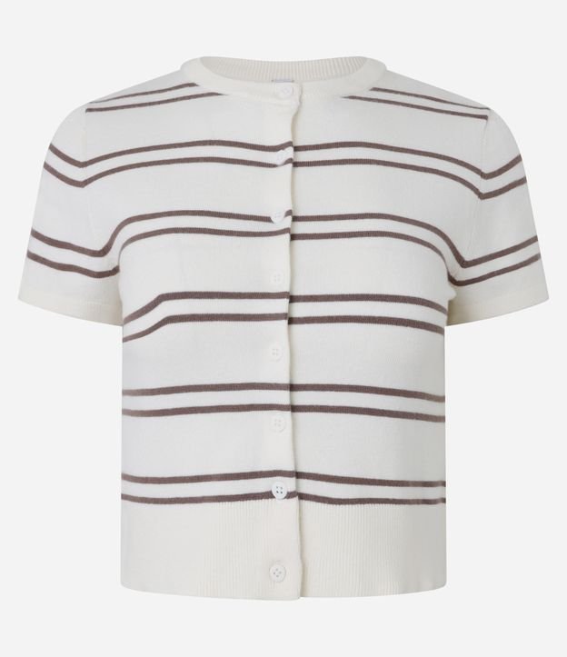 Blusa em Tricô com Abotoamento e Estampa de Listras Branco/Marrom