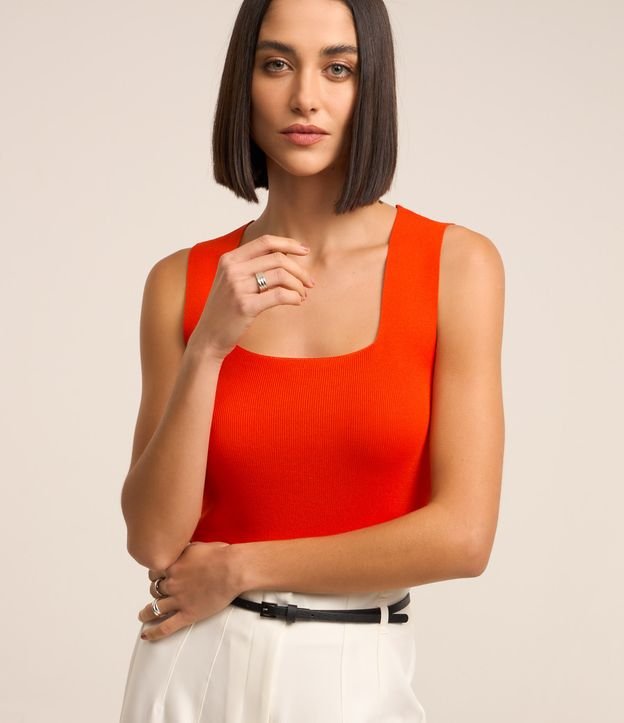 Blusa em tricô com decote quadrado, alça larga e sem estampa.