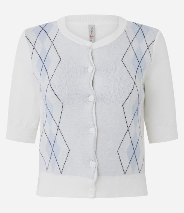 Blusa em Tricô com Estampa Geométrica e Botões Frontais Branco