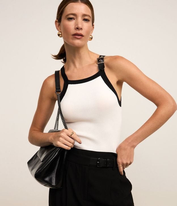 Blusa em Tricô com Fivela na Alça Fina Contrastante Branco