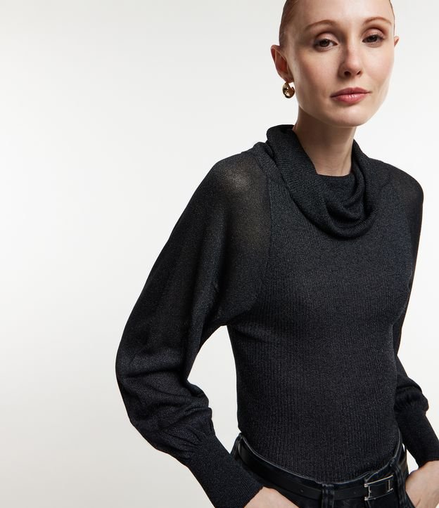 Blusa em Tricô com Gola Alta Boba e Detalhe em Fio Metalizado