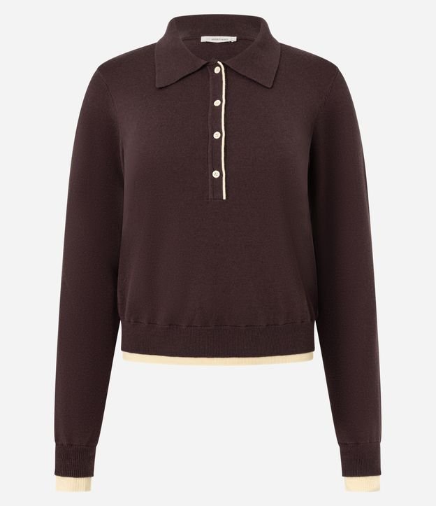 Blusa em Tricô com Gola Polo e Detalhes Contrastantes Marrom