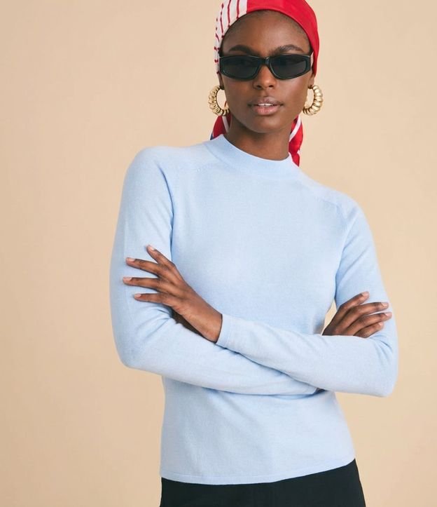 Blusa em Tricô com Golinha Alta e Transparência Azul