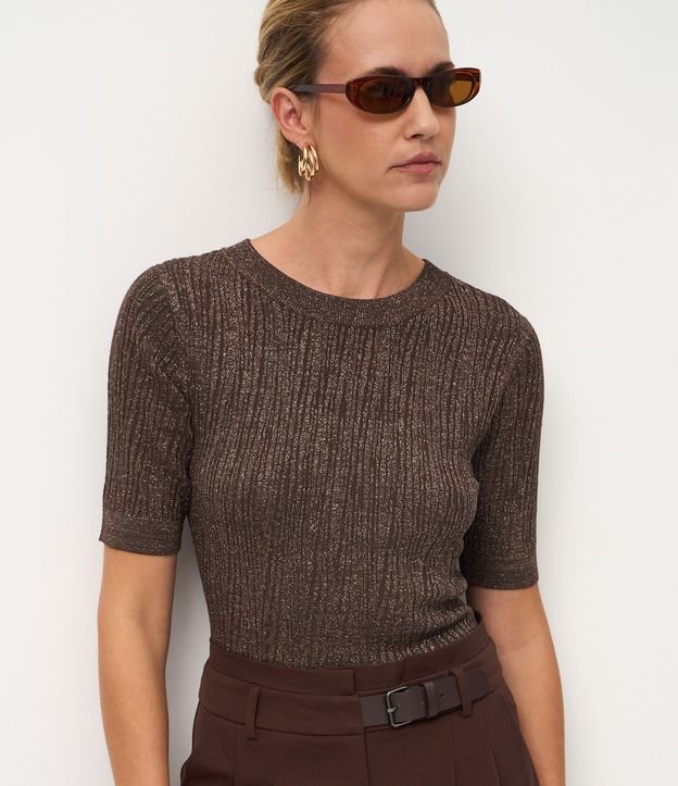 Blusa em Tricô com Ponto Diferenciado e Caimento Leve Marrom